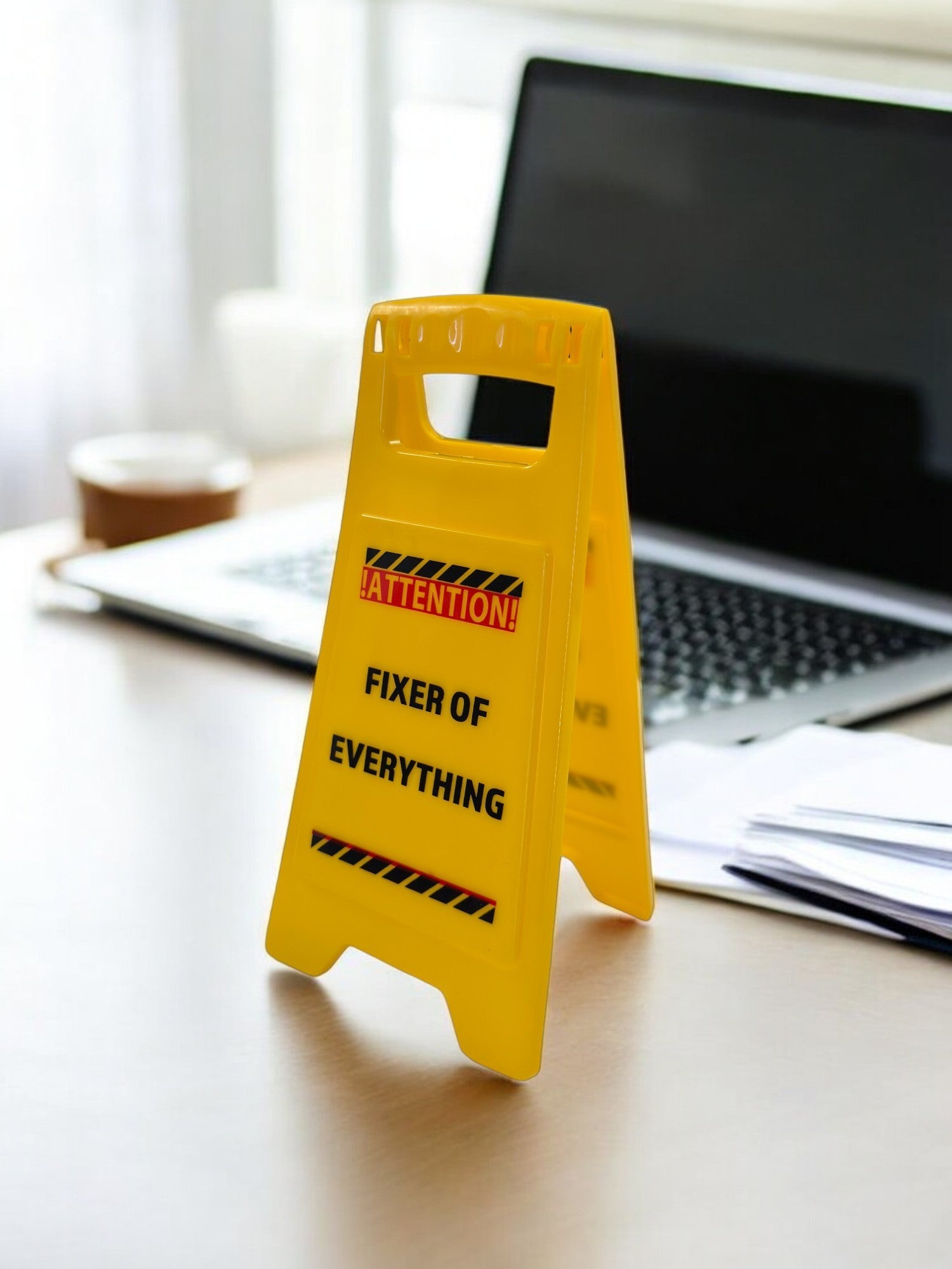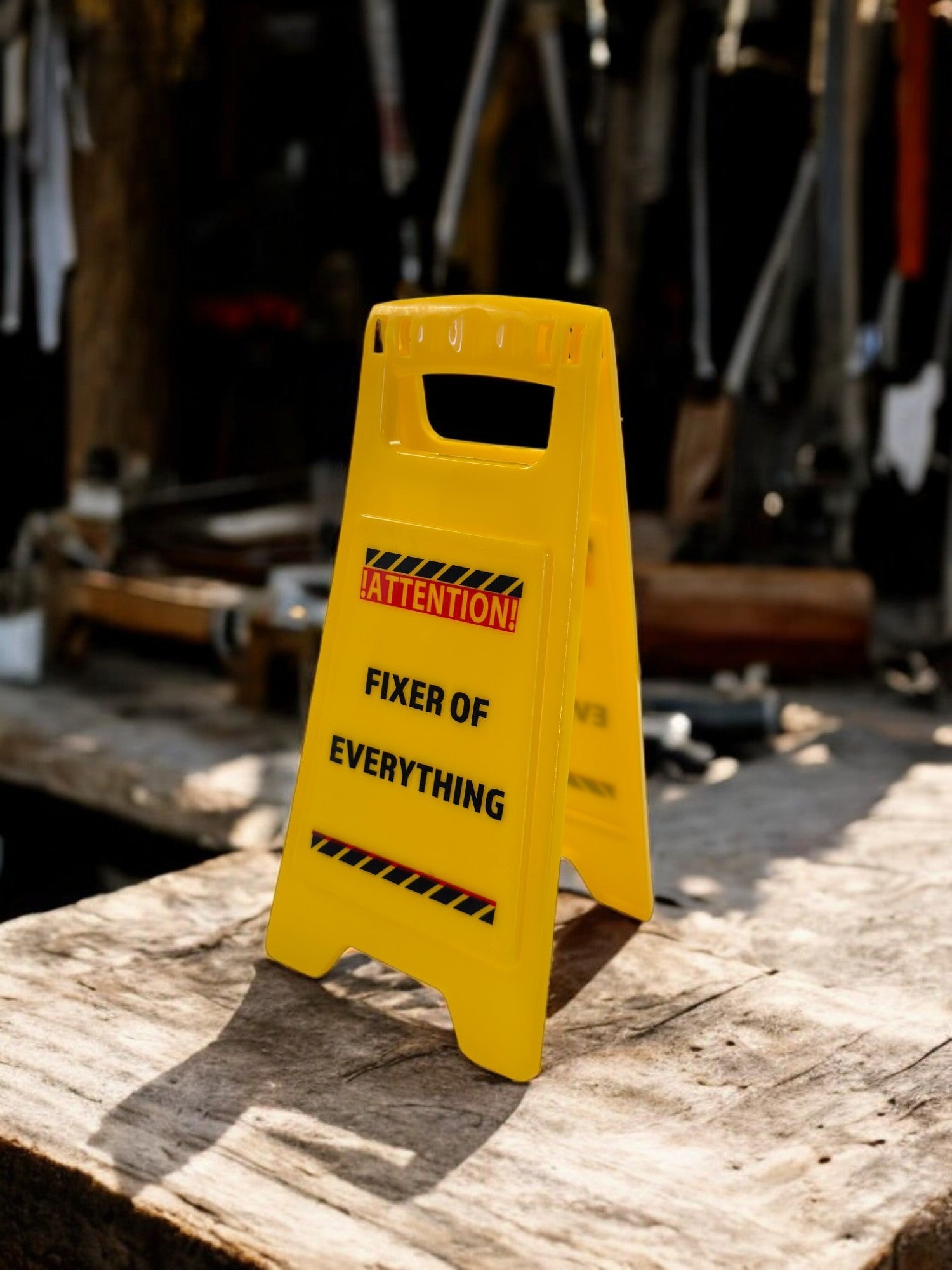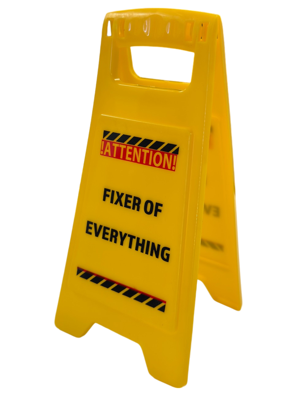 Fixer of Everything Novelty Caution Sign Funny Gag Gift for Home Office Joke White Elephant